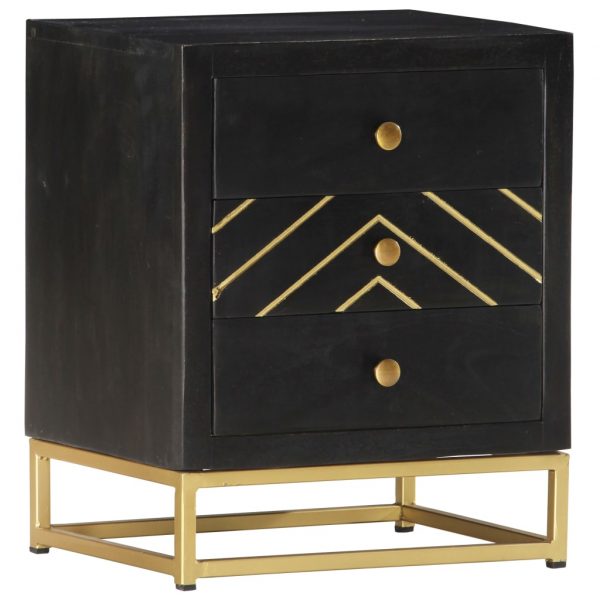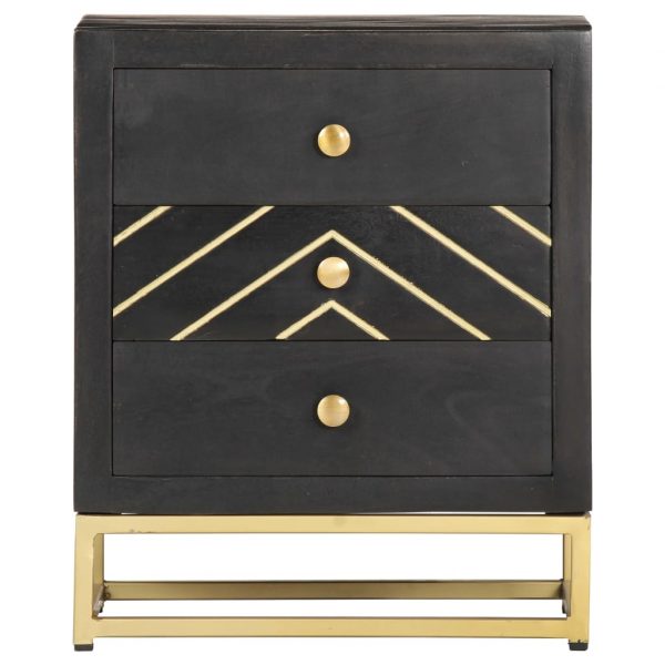 Our wooden bedside cabinet features a balck and gold finish and will be a decorative addition to your bedroom. The nightstand is handmade of mango wood which is solid, stable, durable and beautiful, and the craftsmanship adds to its spectacular retro style. Every step of the process is carried out with the greatest care, be it polishing, painting or lacquering. The craftsmanship and the beautiful wood grains make every piece of furniture unique and slightly different from the next. Besides, it has a sturdy top and three drawers which provide enough space for you to keep various items such as books, glasses, remotes, etc. neatly organised and within reach. This item is easy to assemble. Important note: The colours vary from piece to piece, making each piece unique and slightly different from the next; the delivery is random.