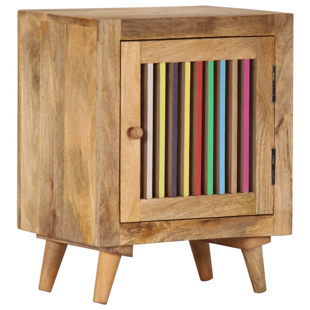 This wooden bedside cabinet exudes an attractive charm and will make a timeless addition to your interior. This nightstand is made of solid mango wood, which is a hardwood with dense grains. Rough mango wood not only has the strength to bear the weight, but also stands the wear and tear of time. Therefore this beautifully-designed bedroom cabinet is stable, durable and eye-catching. The perfect craftsmanship guarantees that every step of the process is carried out with the greatest care, be it polishing, painting and lacquering. Besides, this telephone cabinet could provide ample space for storing your notepads, books, and various other items. Important note: The colours and grains vary from piece to piece, making each piece unique; the delivery is random. Warning: In order to prevent overturning, this product must be used with the wall attachment device provided.