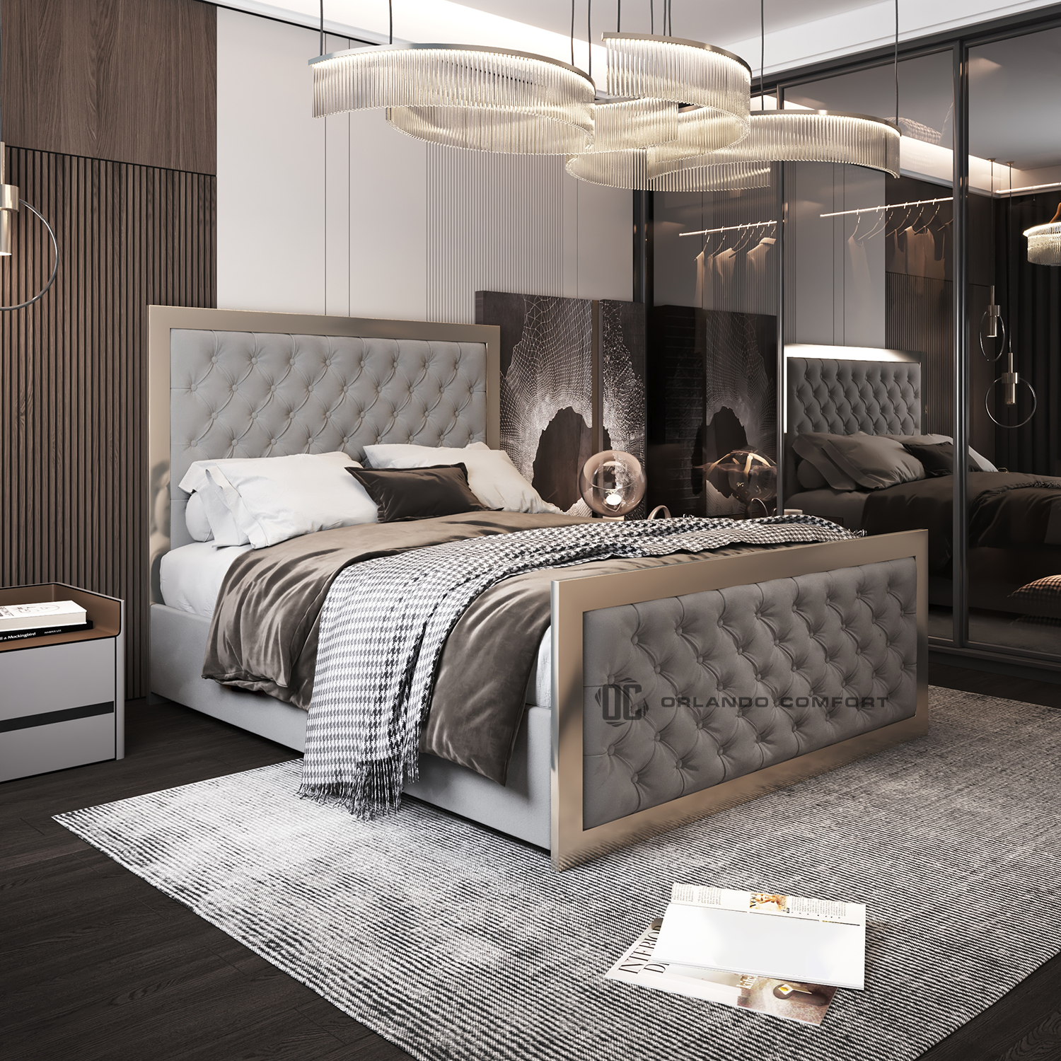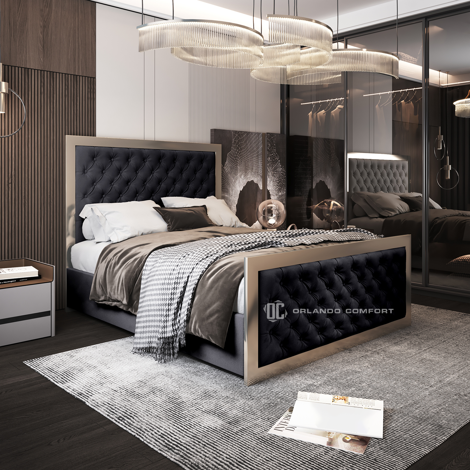 The Deacon features a strong metal facing around the headboard and foot which really accentuates the fabric upholstery. Make it truly your own signature piece with this stunning surround making it look like a true work of art in a picture frame.