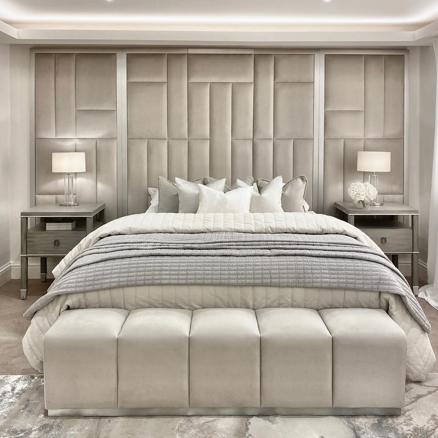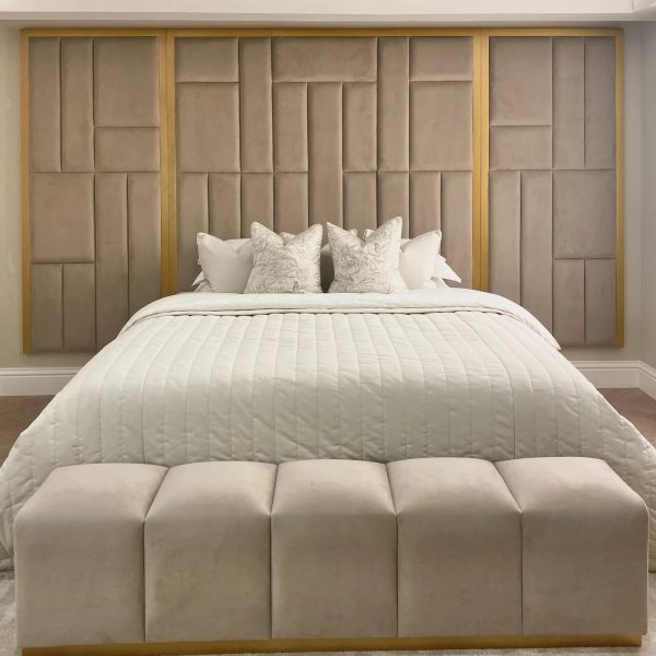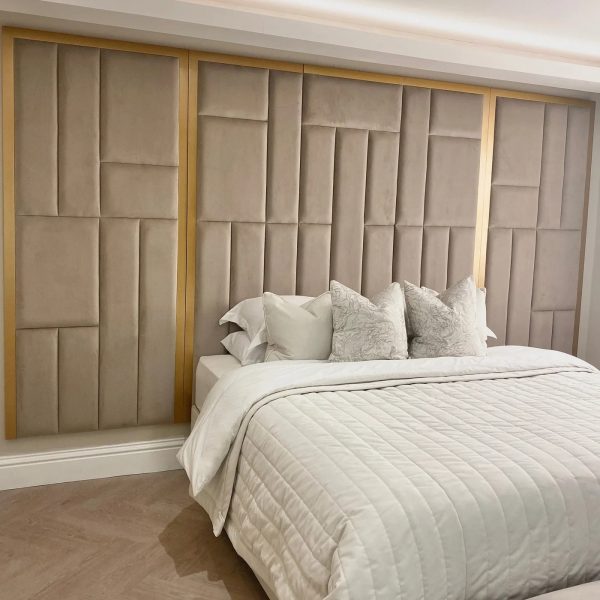 The rich fabric adorning the headboard enhances the sophistication of any room, making it an essential piece for creating a contemporary neutral scheme. It perfectly mimics the ambiance of a high-end boutique hotel, right in your own home.