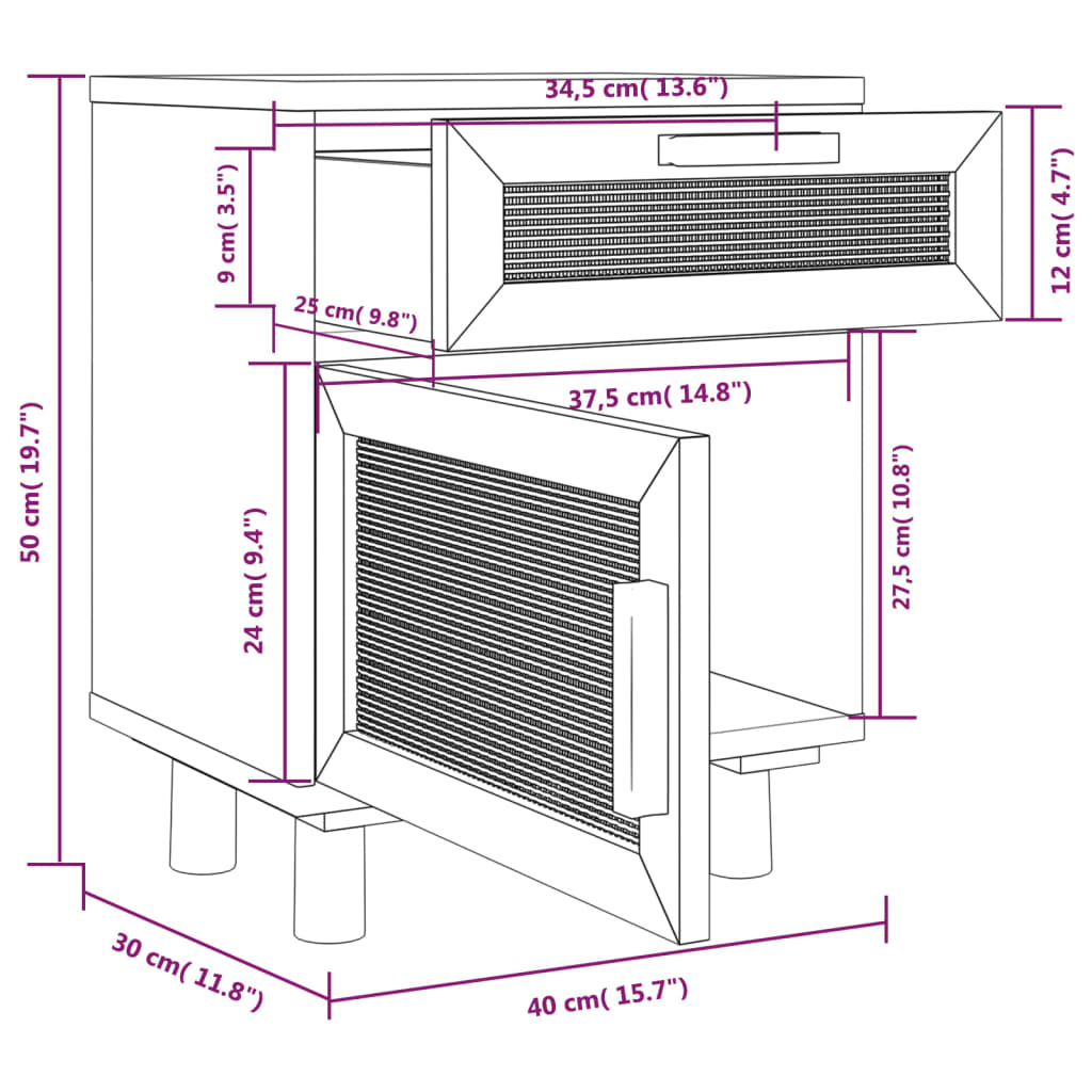 Add a Scandinavian touch to your room with these bedside cabinets! It makes a practical and decorative addition to your home. Durable material: The engineered wood is of exceptional quality with smooth surface and also features strength, stability and resistance to moisture.Ample storage space: Equipped with 1 drawer and 1 compartment, the cabinet offers ample storage space for keeping various daily essentials well organised and within easy reach. Also, the nature rattan weaving design adds extra beauty.Solid pinewood feet: The wooden feet give the bedside table a natural and pleasant look while ensuring stability. It can blend well with any interior decor.Sturdy top: The side cabinet has a sturdy top, which is perfect for placing potted plants, framed photos and other decorative items. Note:Each product comes with an assembly manual in the box for easy assembly. Warning:In order to prevent overturning, this product must be used with the wall attachment device provided.