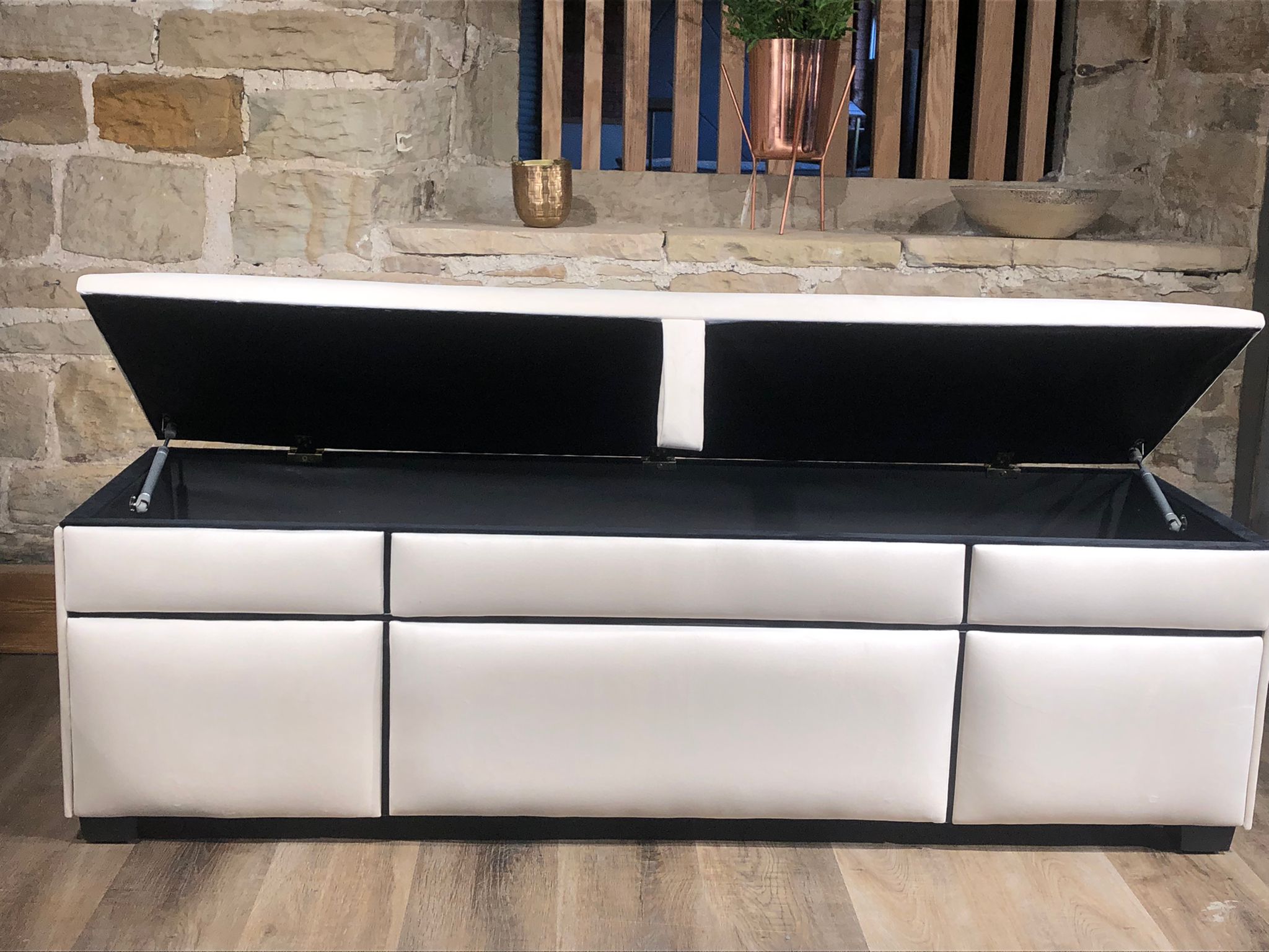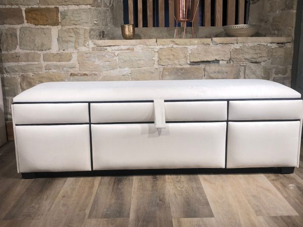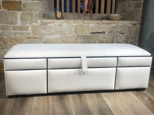 Gas lift ottomans can be end opening (open on the foot end) or side opening (either side) based on your room layout.