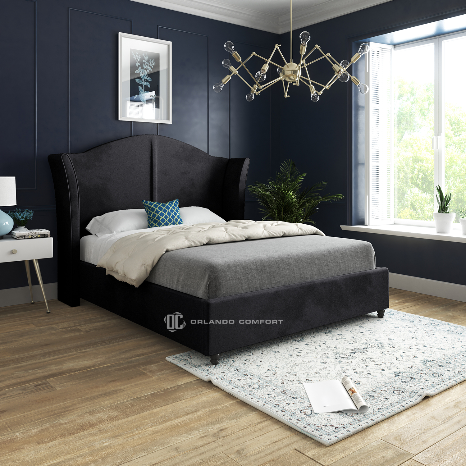 Transform your bedroom into a serene sanctuary with our extensive colour palette, featuring stunning stealthy comet blacks for a contemporary look, to beautiful plush turquoise for a vibrant and inviting space. The Zampa Upholstered Bed is designed to complement any décor, with customisable metal colour options, including beautiful textured blacks for a modern touch or luxurious royal golds for a touch of opulence.